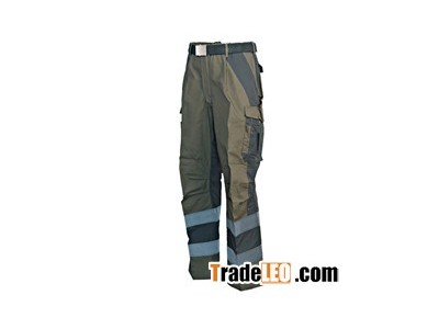 Robust and durable workwear trousers. Multiple practical pockets. Two-layer knees with down opening for sponge pad inserted to protect knees. Contrast patches on left and right side, and back of leg.